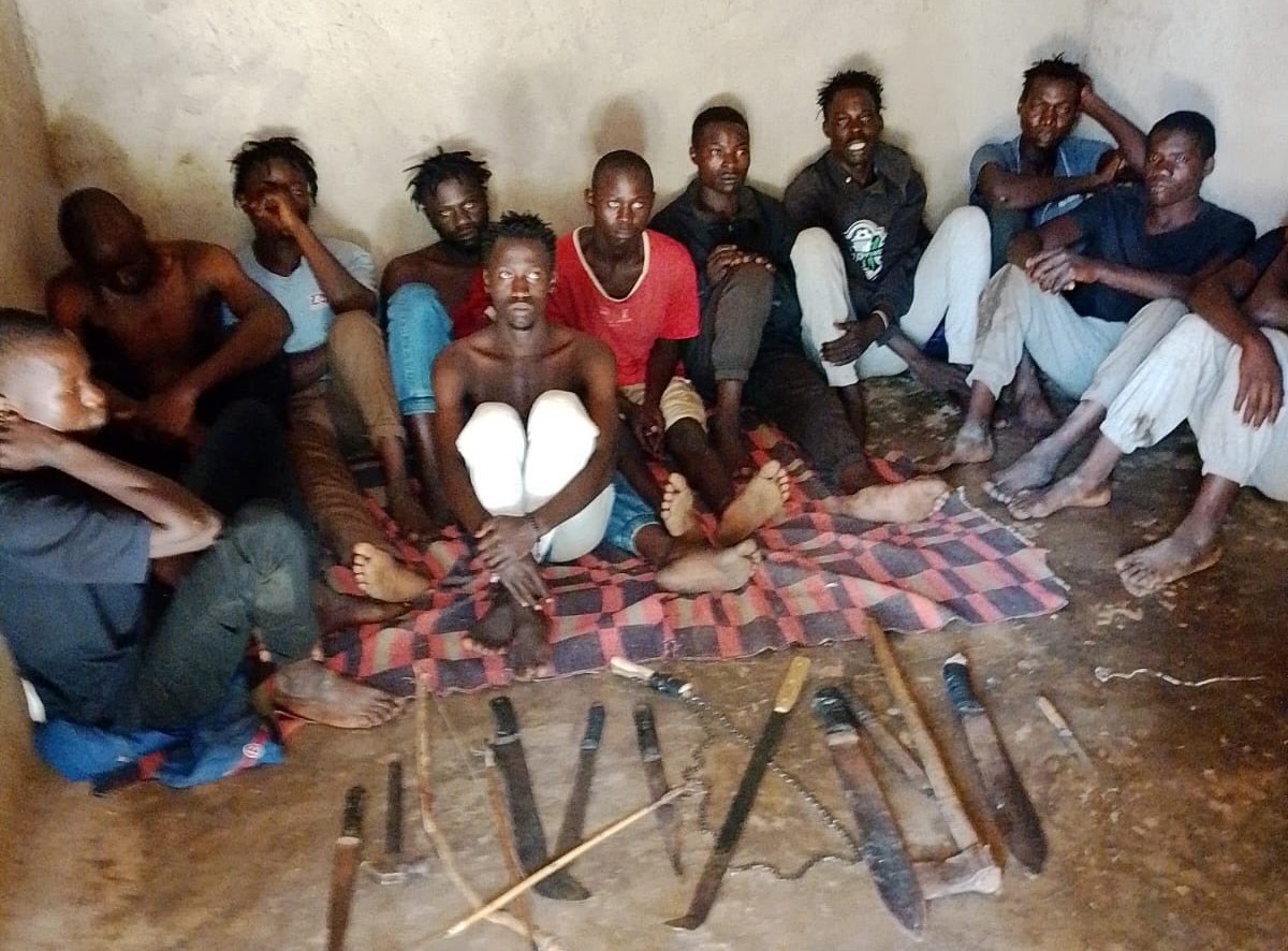 During the operation, officers recovered several crude weapons, including bows, arrows, machetes, and knives, believed to have been used by the gang to carry out their activities.