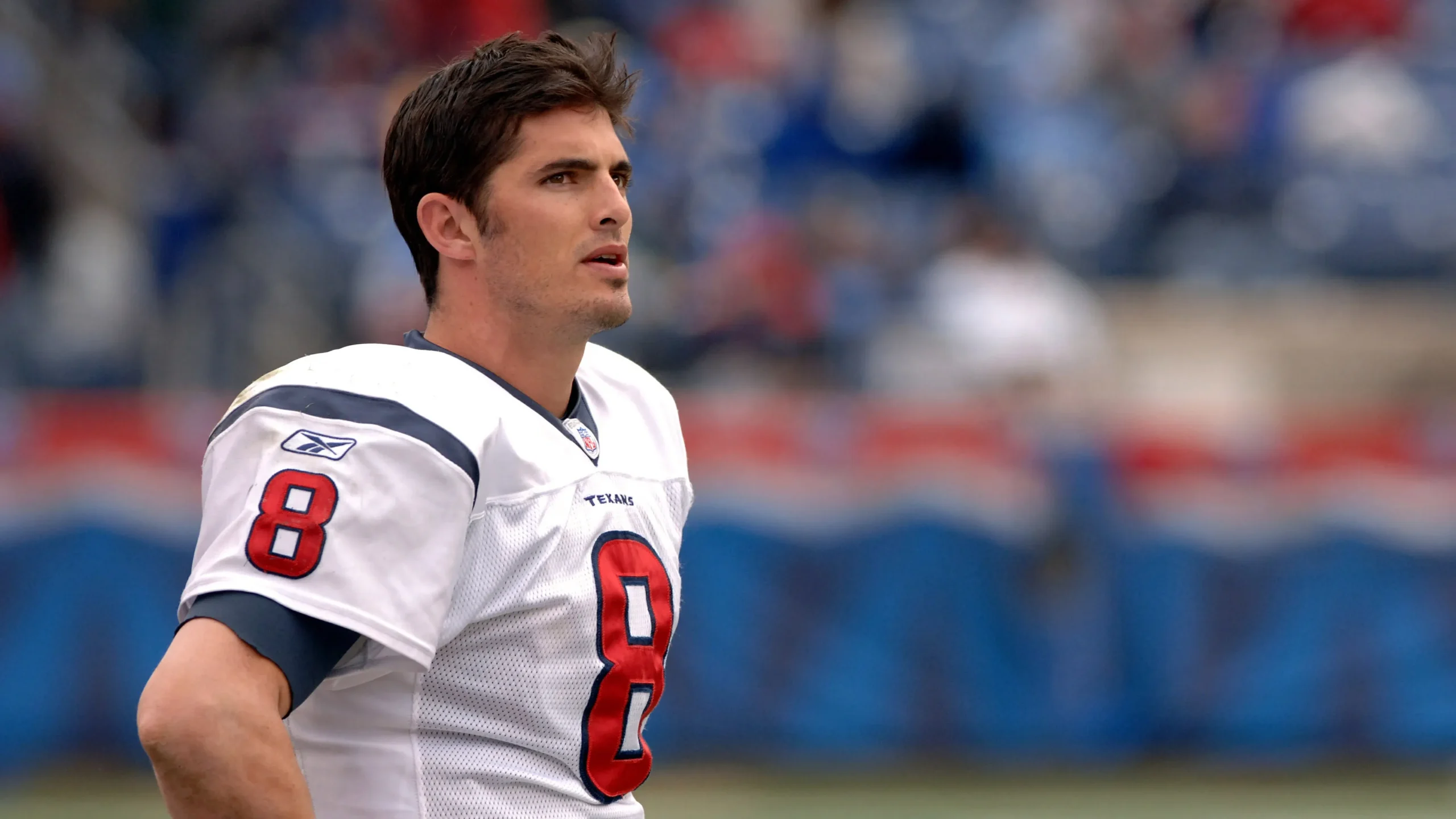 Over four seasons in Houston, he started 58 games, amassing 11,728 passing yards, 59 touchdowns, and 41 interceptions, guiding the team to incremental improvements from 4-12 in 2002 to 7-9 in 2004, his statistical peak with 3,531 yards and a career-high 68.9% completion rate.