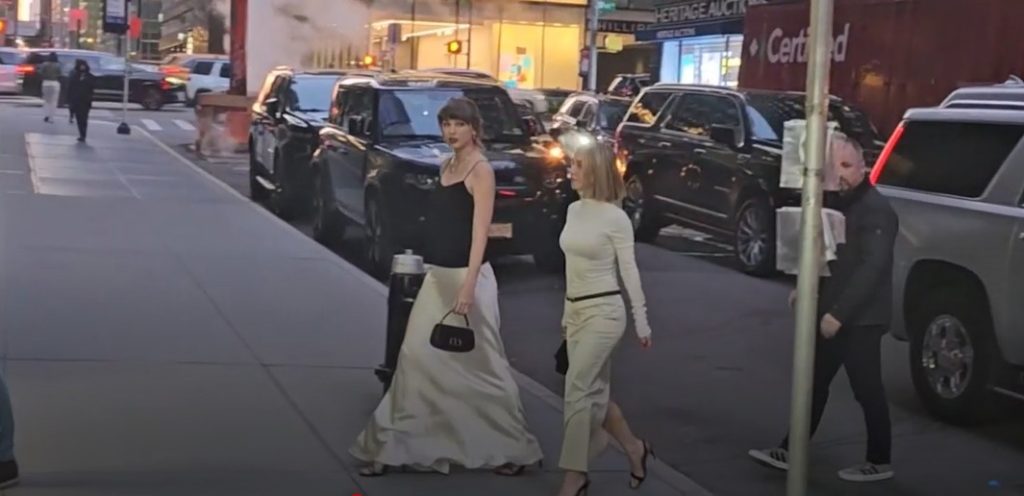 The singer was seen walking through the city alongside close friend Ashley Avignone and comedian Jerrod Carmichael. Swift turned heads in an elegant ivory skirt paired with a black top and heels, completing her look with a black Dior handbag.