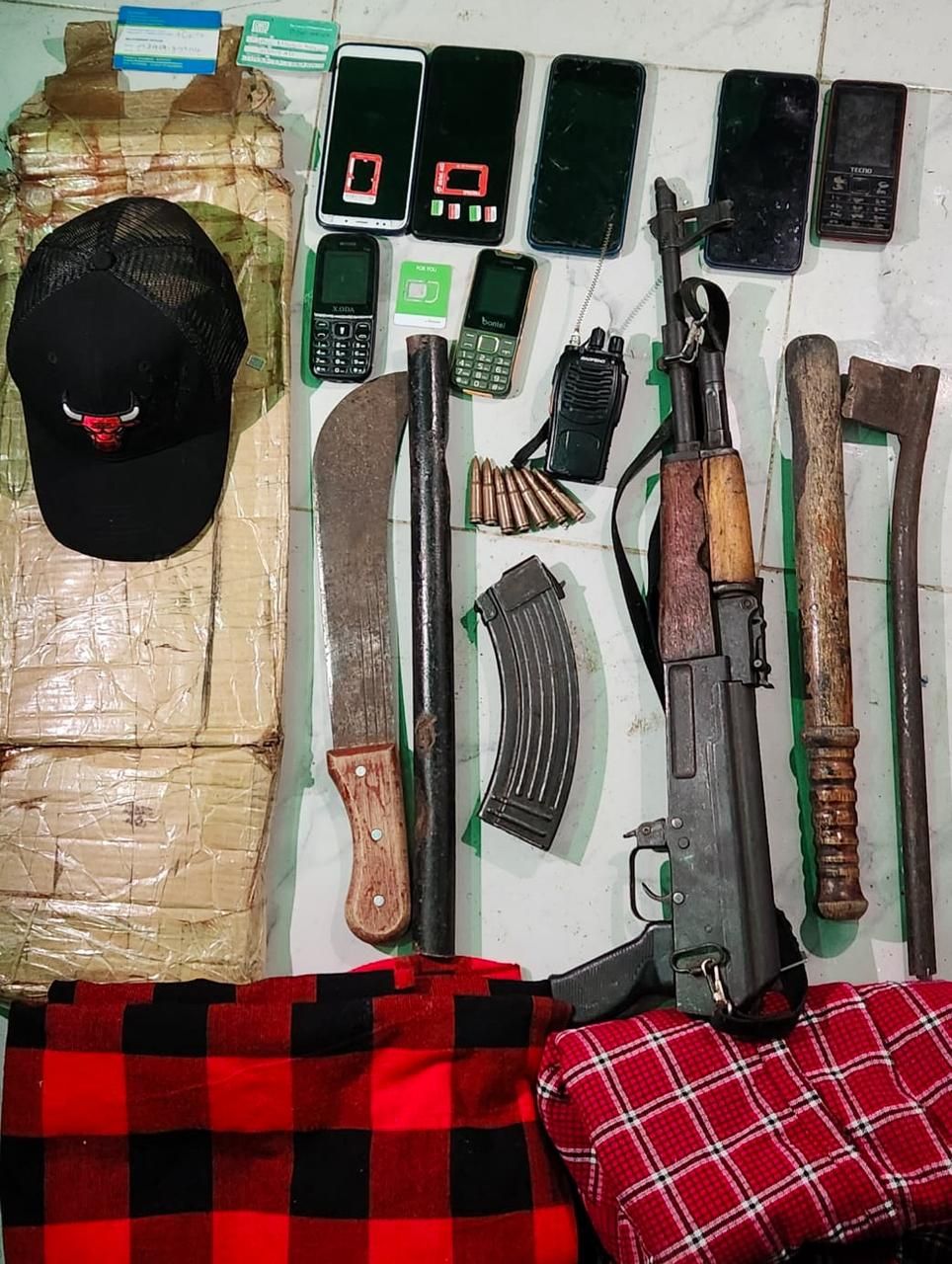 The operation was later extended to Kiserian township in Kajiado County, where officers arrested another suspect at a residence. A search of the premises led to the recovery of an AK-47 rifle with ammunition, a walkie-talkie, mobile phones, a tear gas canister, and several house-breaking tools.