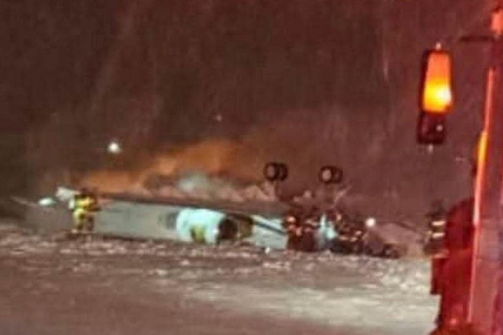 The incident came as a dangerous winter storm barrelled across a large swathe of the US, killing several people and leaving hundreds of thousands without power. Pilots had reportedly been struggling with visibility at the airport before the crash.