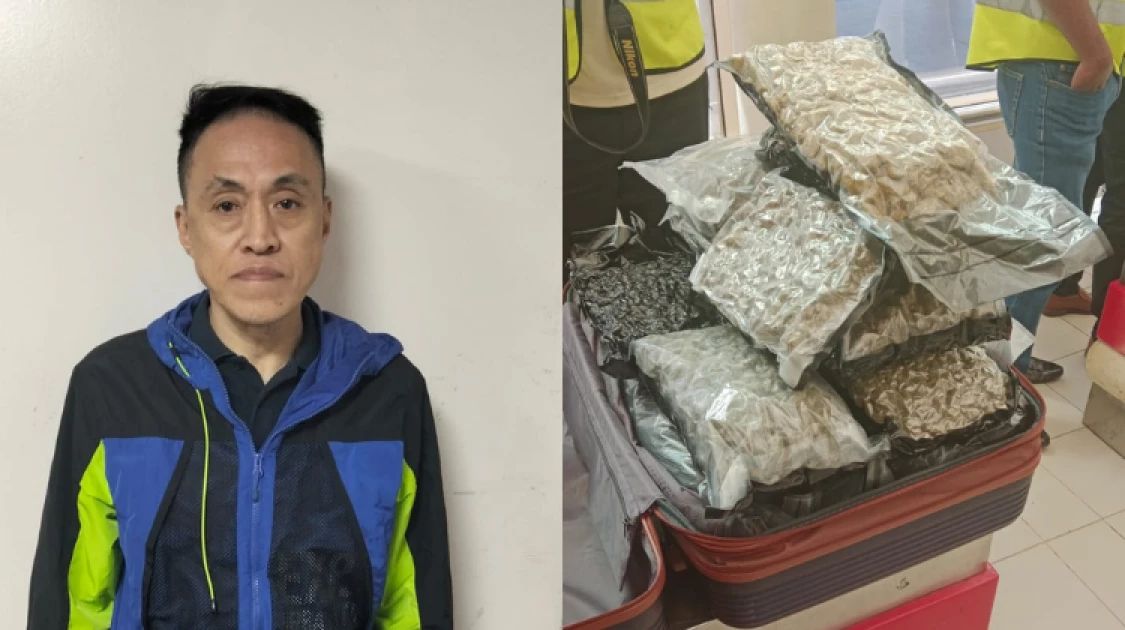 Wong Hiu Fung reportedly landed at JKIA from Bangkok, Thailand, and after being cleared by immigration officers, he collected his two suitcases and made his way to the customs screening zone.