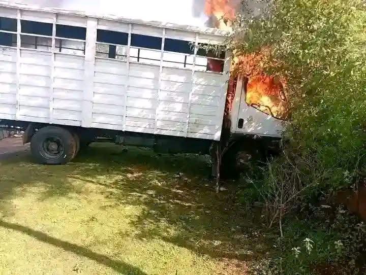 The villagers rescued the nine cows that were on board before they set the lorry on fire. They then turned on three suspects who were on board including a woman and stoned them to death, police said.