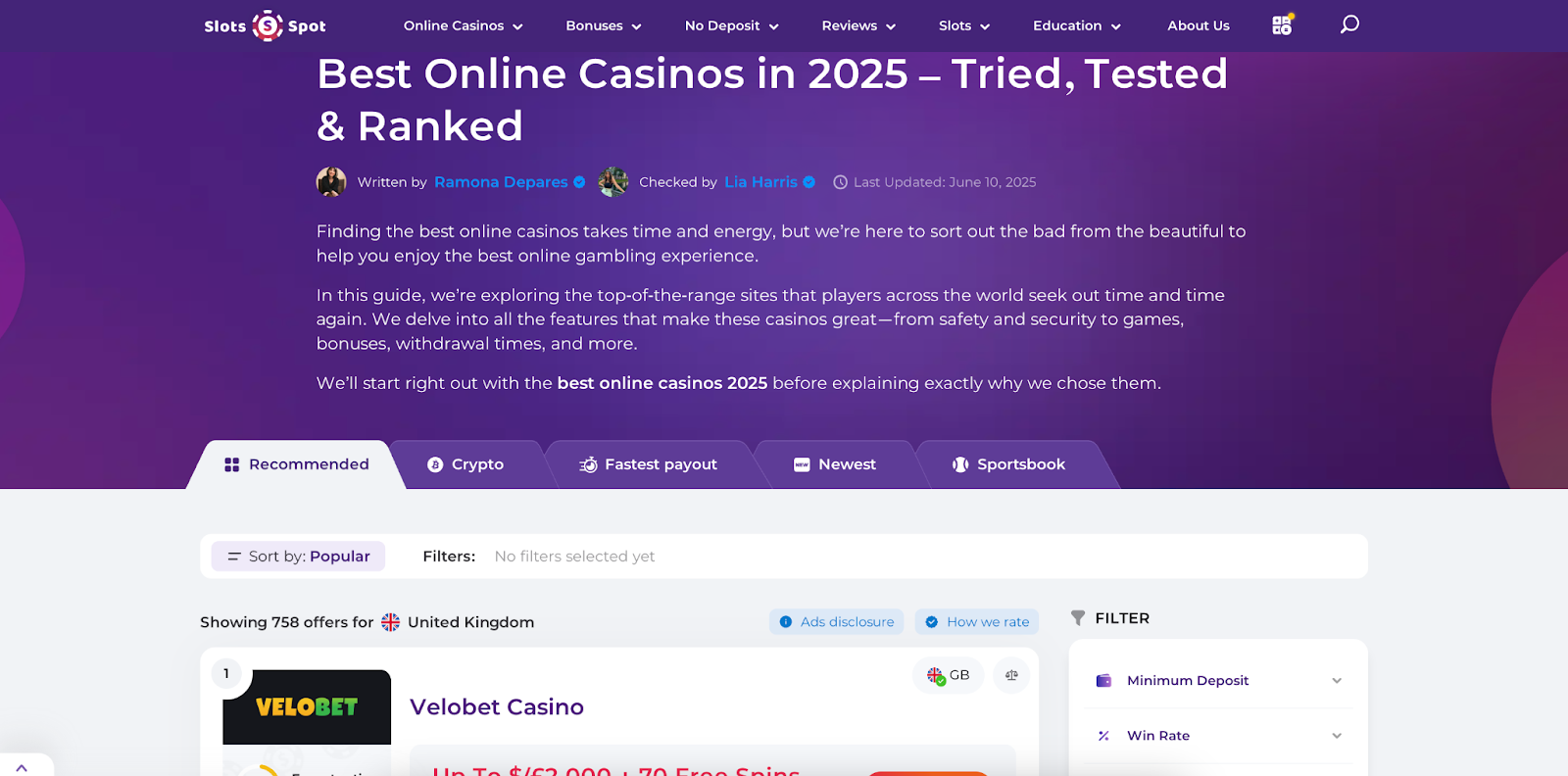 Gambling.com is for the players who care about the math behind the madness. You’re not just clicking slots because they look nice — you want the RTP, the volatility, the hit rate. This online casino review site dives into raw data like it’s Wall Street for slots.